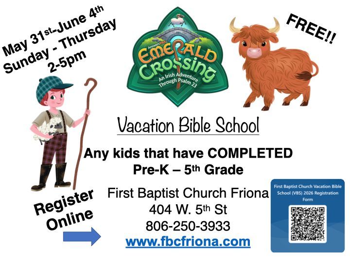 Come join us at FBC Friona! We are a warm and loving church family committed to the great commandment, the great commission, and the truth of God’s Word. At FBC we desire to see Christ glorified in our lives and seek to minister to people of all ages. We hope you can join us for worship this week! If you have any questions, or if we can help you in any way, please contact us.